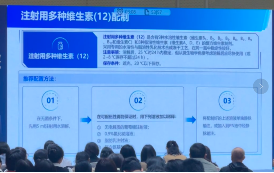 其中,多種維生素12是目前國內(nèi)市場應(yīng)用廣泛的靜脈復(fù)合維生素,也是國家基本藥物,醫(yī)保乙類藥品。衛(wèi)美佳?注射用多種維生素(12)使用專利的乳化凍干工藝,突破了12種維生素于一瓶的技術(shù)難題,實(shí)現(xiàn)了水脂合一的一體化穩(wěn)定的維生素制劑。衛(wèi)衡素?多種微量元素(40ml),進(jìn)行了配方優(yōu)化,適合實(shí)際診療需求。新近上市的衛(wèi)微丹?多種微量元素(III)成人兒童均適用,符合最新的歐洲和中國指南推薦。