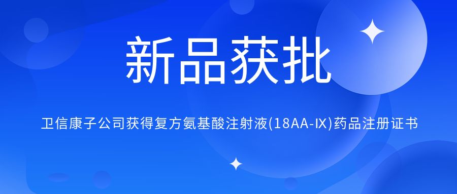 新品獲批 衛(wèi)信康子公司獲得復(fù)方氨基酸注射液(18AA-Ⅸ)《藥品注冊證書》